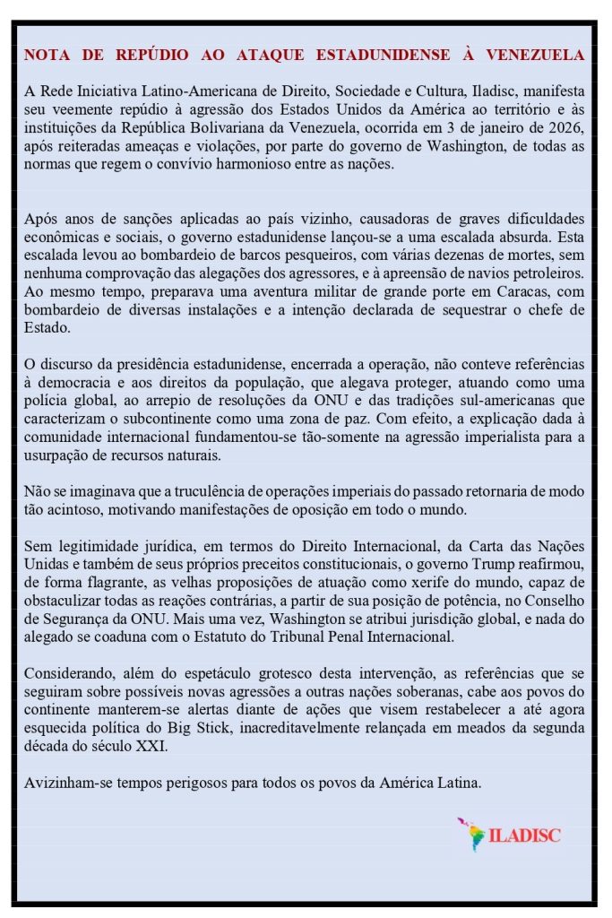 NOTA DE REPÚDIO AO ATAQUE ESTADUNIDENSE À VENEZUELA